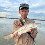 This area is more popular with lure or with fly. Lure fishing uses up to 9ft rod, with casting weight of 24g. Line for the lure is braided line (#0.6-#1). For fly fishing, #6 is the most popular choice, and some are using up to #8.
