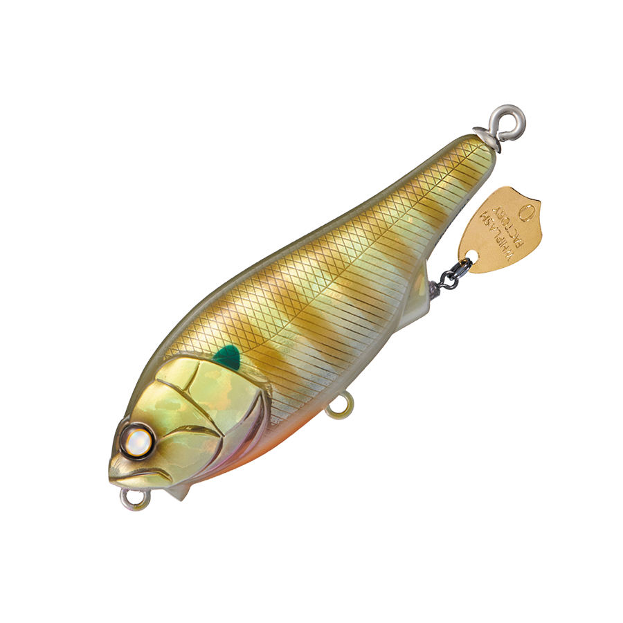 It's a multitalent lure. By adding a rotating blade to a compact topwater profile, Flutterin’ Wire introduces controlled flash and vibration. The blade works to give additional attraction to its basic movement as a top water bait. In terms of top water action, it has a small cup in front to give a splash, and tiny body makes the compact turning movement with subtle twitch. Thanks to its blade, it can work with straight retrieve, too.